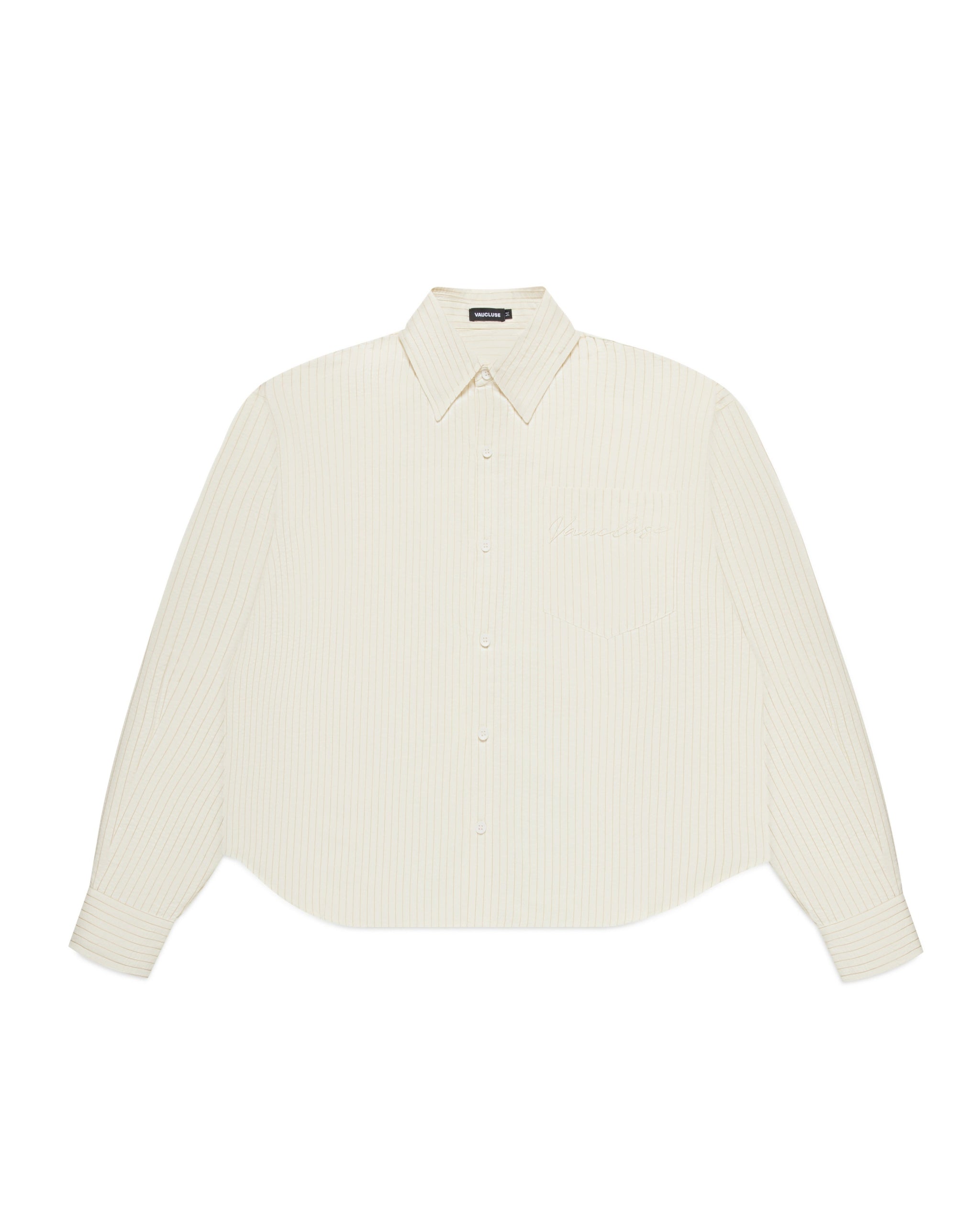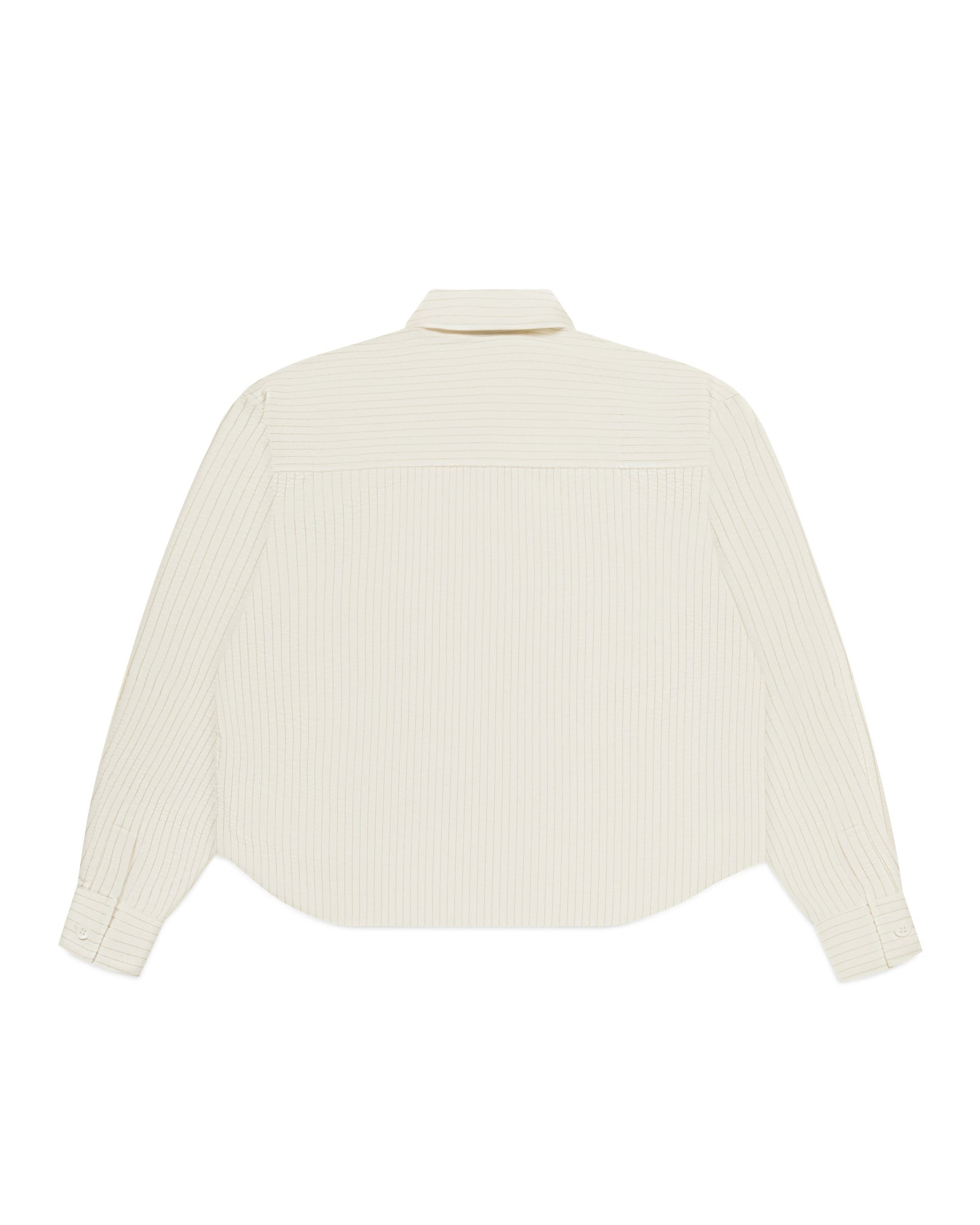 Introducing the Striped Signature Long Sleeve Shirt in Cream/Brown. The shirt features one chest pocket with our signature logo embroidered into the upper left side. Cut to a refined boxy, slightly cropped fit making our long sleeve an outerwear essential.